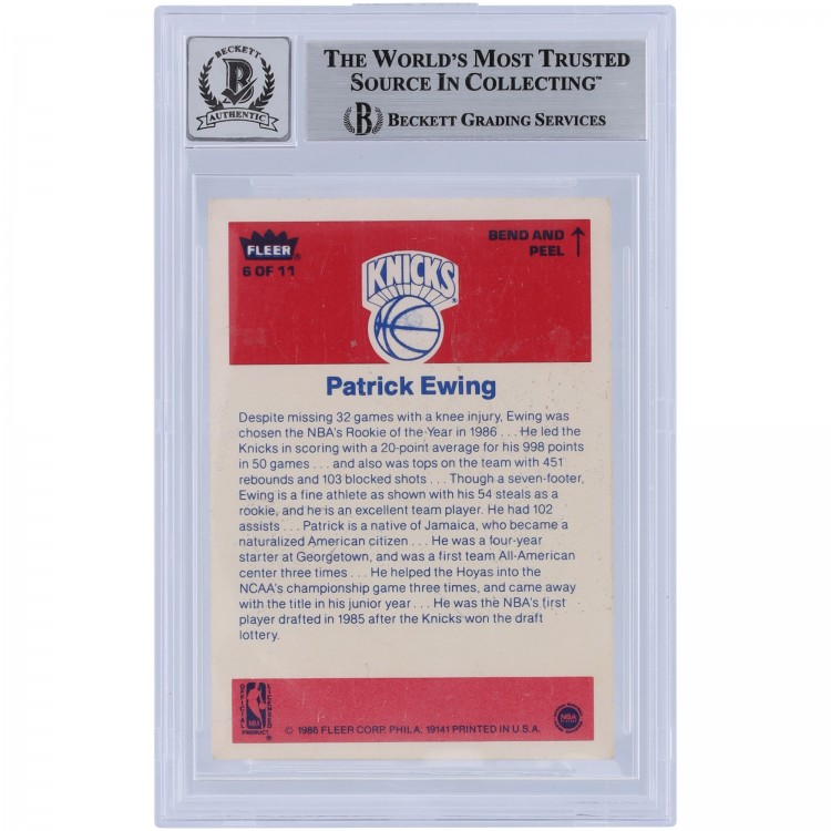 Patrick Ewing New York Knicks Autographed 1986 Fleer Sticker #6 Beckett Fanatics Witnessed Authenticated 10 Rookie Card