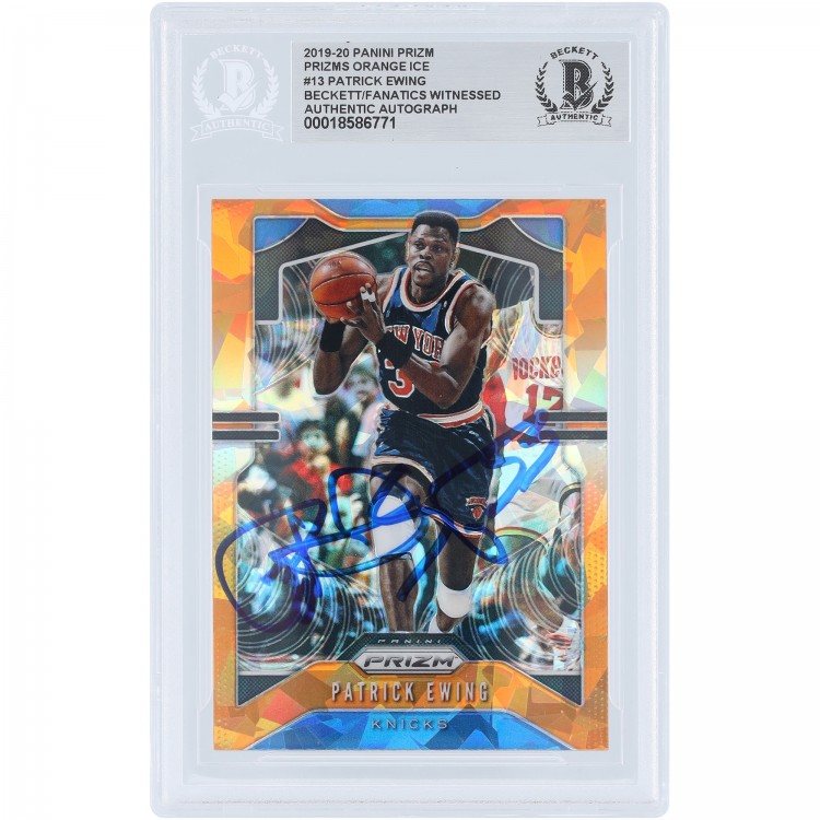 Patrick Ewing New York Knicks Autographed 2019-20 Panini Prizm Orange Ice Prizm #13 Beckett Fanatics Witnessed Authenticated Card