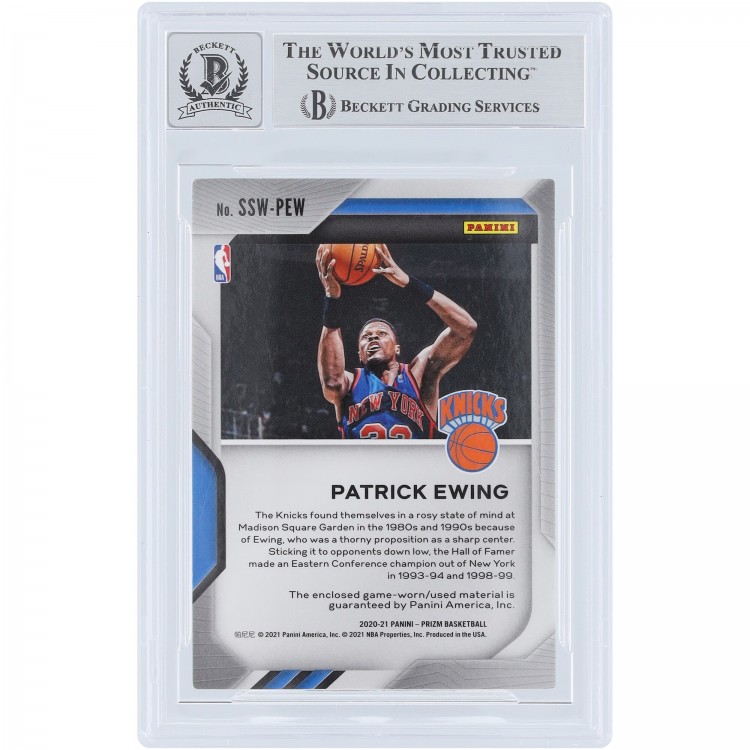 Patrick Ewing New York Knicks Autographed 2020-21 Panini Prizm Sensational Swatches Jersey Relic #SSW-PEW Beckett Fanatics Witnessed Authenticated 10 Card