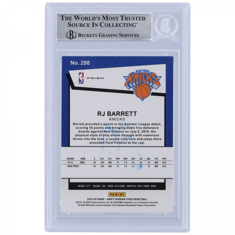 RJ Barrett New York Knicks Autographed 2019-20 Panini Hoops Premium Stock Prizm Pulsar #298 Beckett Fanatics Witnessed Authenticated Rookie Card