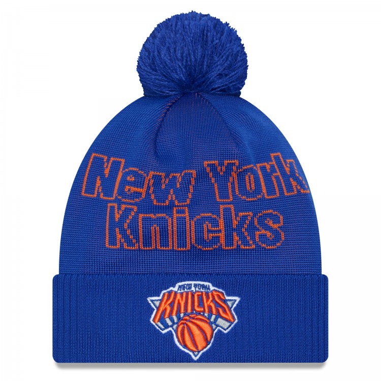Шапка с помпоном New York Knicks New Era 2023 NBA Draft Cuffed Knit - Blue