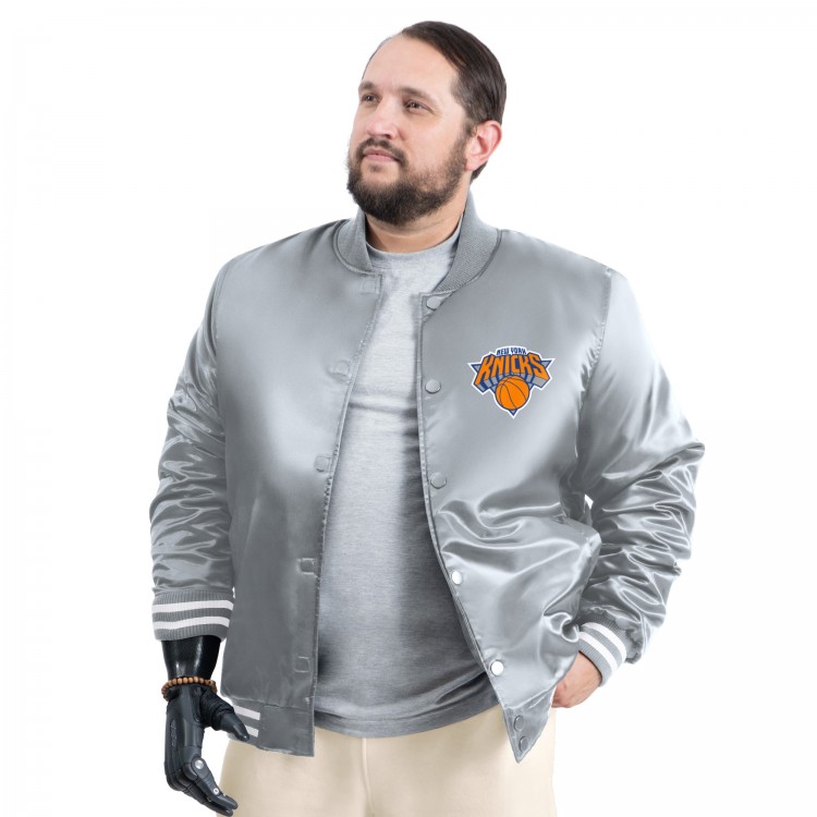 New York Knicks G-III Sports by Carl Banks Gray Adaptive Bold Logo Satin Varsity Jacket