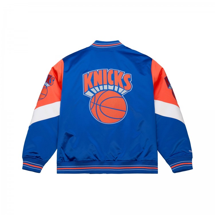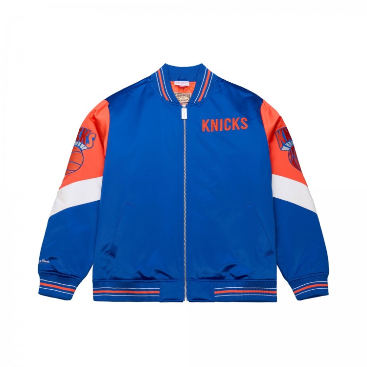 New York Knicks Mitchell & Ness Blue Throw It Back Heavyweight Full-Zip Satin Jacket
