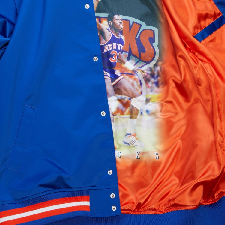 New York Knicks Patrick Ewing Mitchell & Ness Royal NBA Legends Full-Snap Satin Jacket