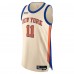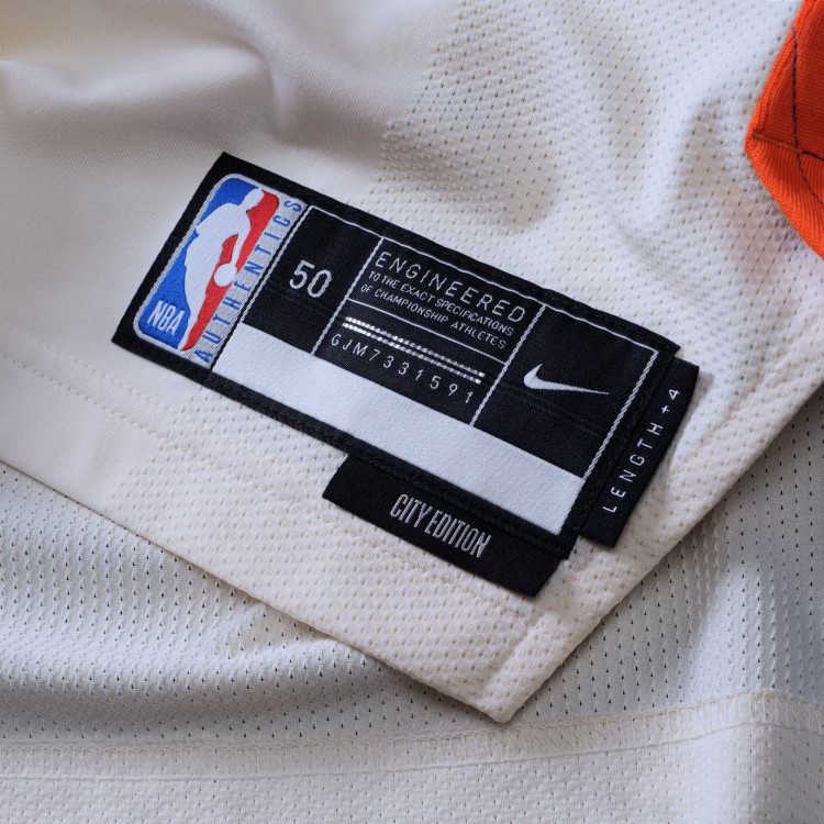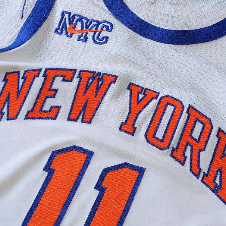 The New York Knicks' 2025/26 City Editon uniform evolves the 2021 fan favorite. It features Nike's NYC Swoosh branding, a mark exclusive to the Knicks, as well as a monogram blocked pattern along the side panels as an ode to Kith's design language.
