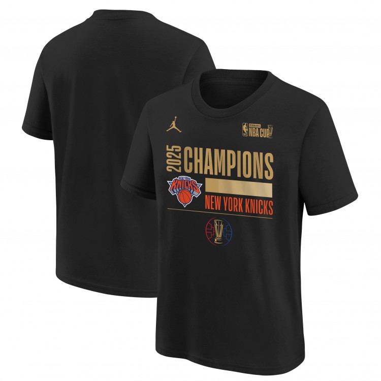 Подростковая New York Knicks Jordan Brand Black 2025 NBA Cup Champions Locker Room T-Shirt