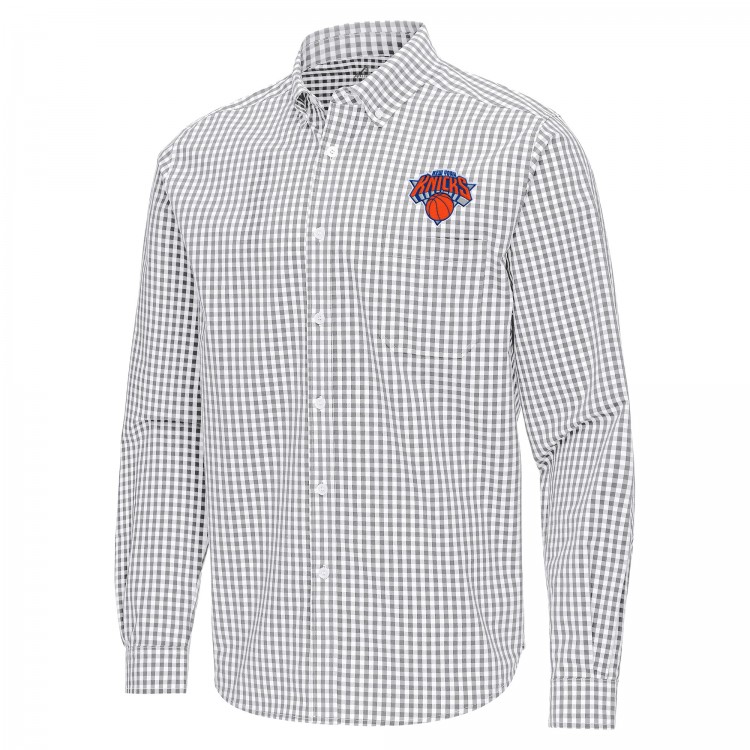 New York Knicks Antigua Gray Ellis Woven Tri-Blend Button-Down Shirt