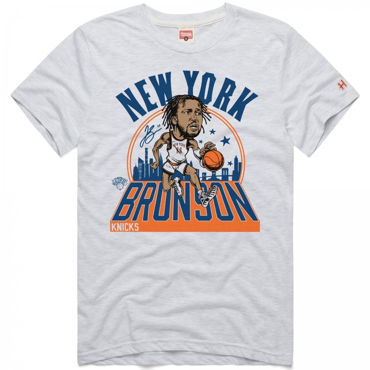 Футболка Jalen Brunson New York Knicks Homage Unisex 2024/25 City Edition Caricature Tri-Blend - Ash