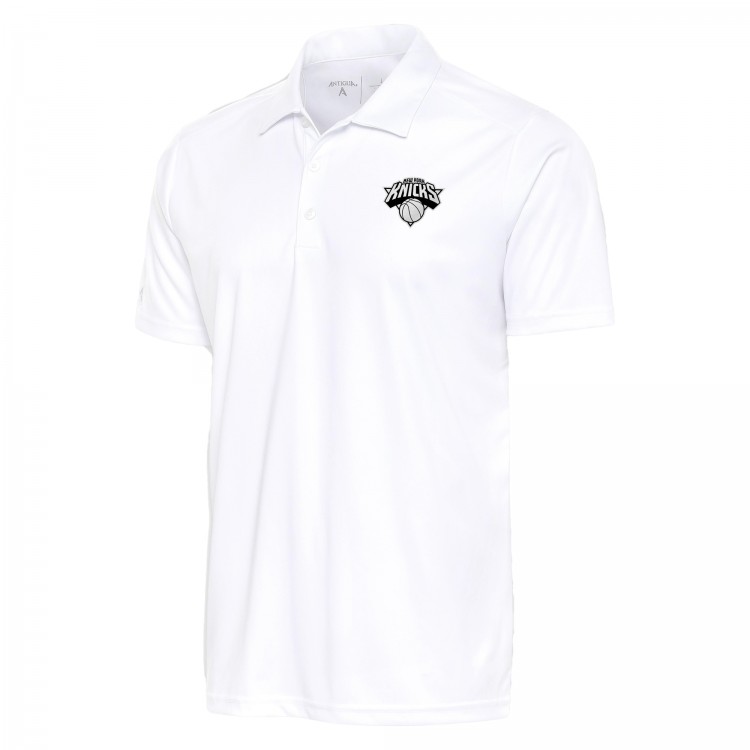 New York Knicks Antigua White Metallic Logo Tribute Desert Dry Polo