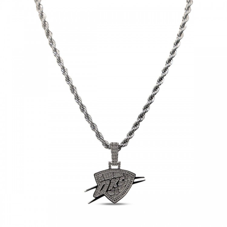 Oklahoma City Thunder GLD 14K White Gold Logo Pendant & 20 Rope Chain