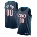 The Oklahoma City Thunder 2025/26 City Edition jersey continues to tell a story of community and passion built by those who came before. At the heart of the uniform, geometric shapes link to form the city's name. Interlocking as one shape creating the OKC letters, it builds a bold convergence of community, strength, and belonging. Inspired by the Oklahoma River that binds the north and south sides of the city, water-like teeth bridge the duotone colors, uniting both halves of the jersey into one. The Thunder sunset-colored sash is symbol of the identity and a tribute to the resilience of Oklahoma's tribes and the state that continue to build together. The 11 geometric stars, representing the stories passed down from one generation to the next.