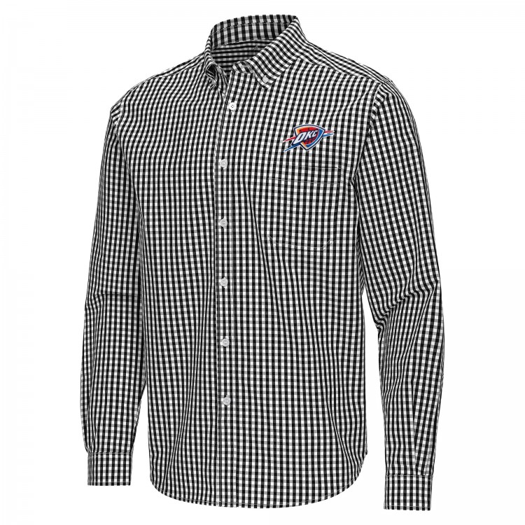 Oklahoma City Thunder Antigua Black Ellis Woven Tri-Blend Button-Down Shirt