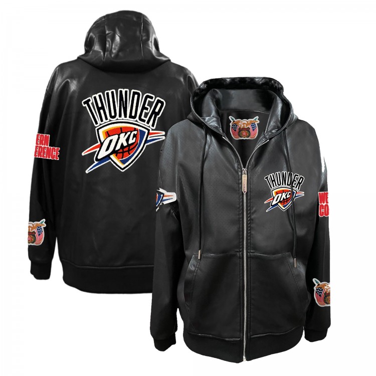Толстовка на молнии Oklahoma City Thunder Jeff Hamilton Black Vegan Leather