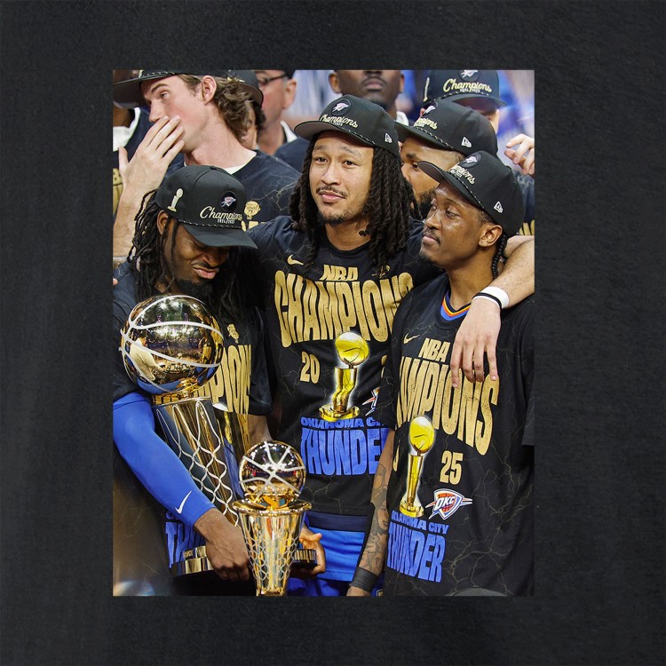 Футболка Oklahoma City Thunder Luguentz Dort, Jaylin Williams & Jalen Williams Black 2025 NBA Finals Champions Game Frames