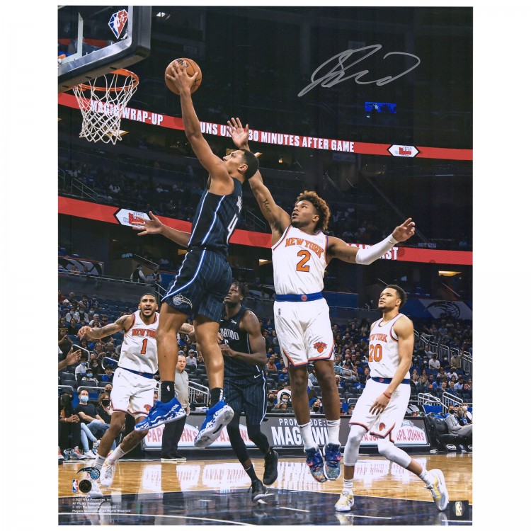 Autographed Orlando Magic Jalen Suggs Fanatics Authentic 16 x 20 Black Jersey Layup Photograph