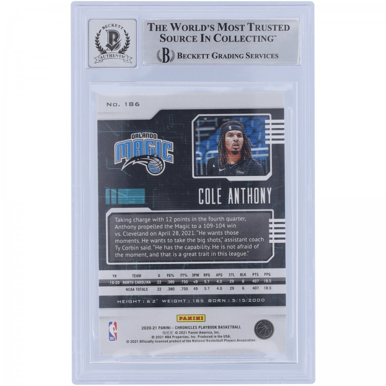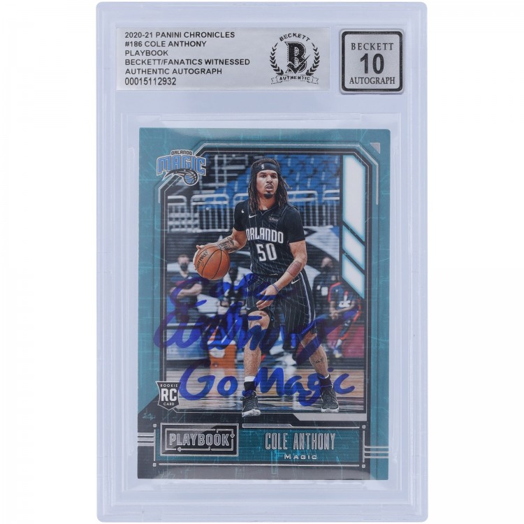 Cole Anthony Orlando Magic Autographed 2020-21 Panini Chronicles Playbook #186 Beckett Fanatics Witnessed Authenticated 10 Rookie Card with Go Magic Inscription