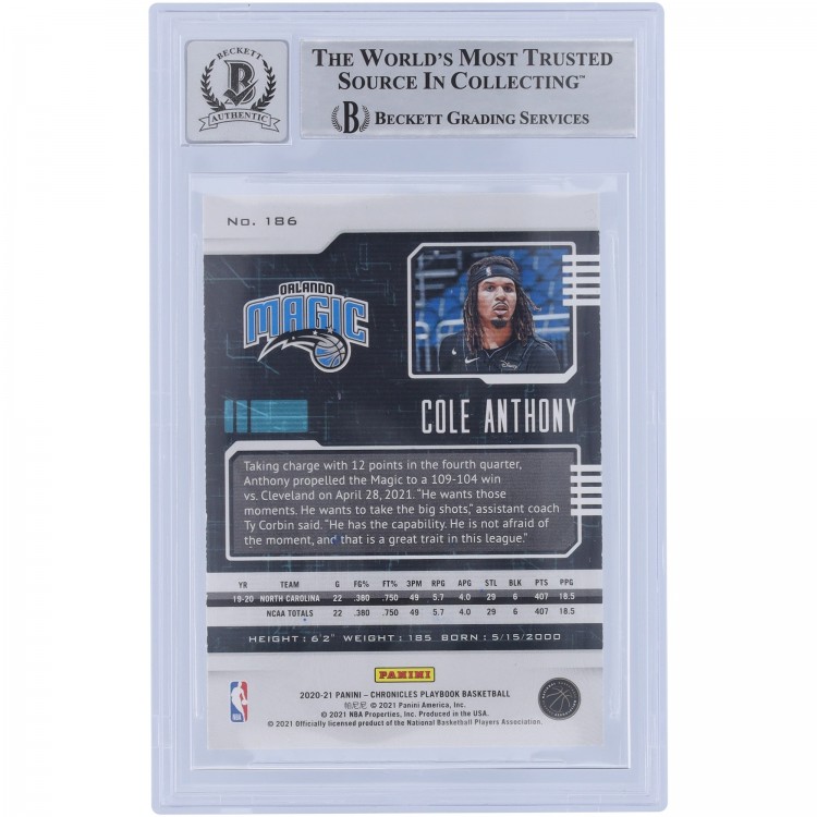 Cole Anthony Orlando Magic Autographed 2020-21 Panini Chronicles Playbook Pink Variation #186 Beckett Fanatics Witnessed Authenticated 10 Rookie Card with Go Magic Inscription