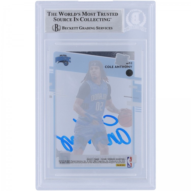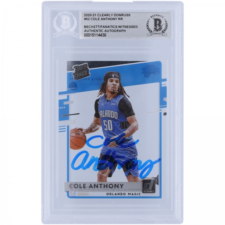 Cole Anthony Orlando Magic Autographed 2020-21 Panini Donruss Clearly Rated Rookie #52 Beckett Fanatics Witnessed Authenticated Rookie Card
