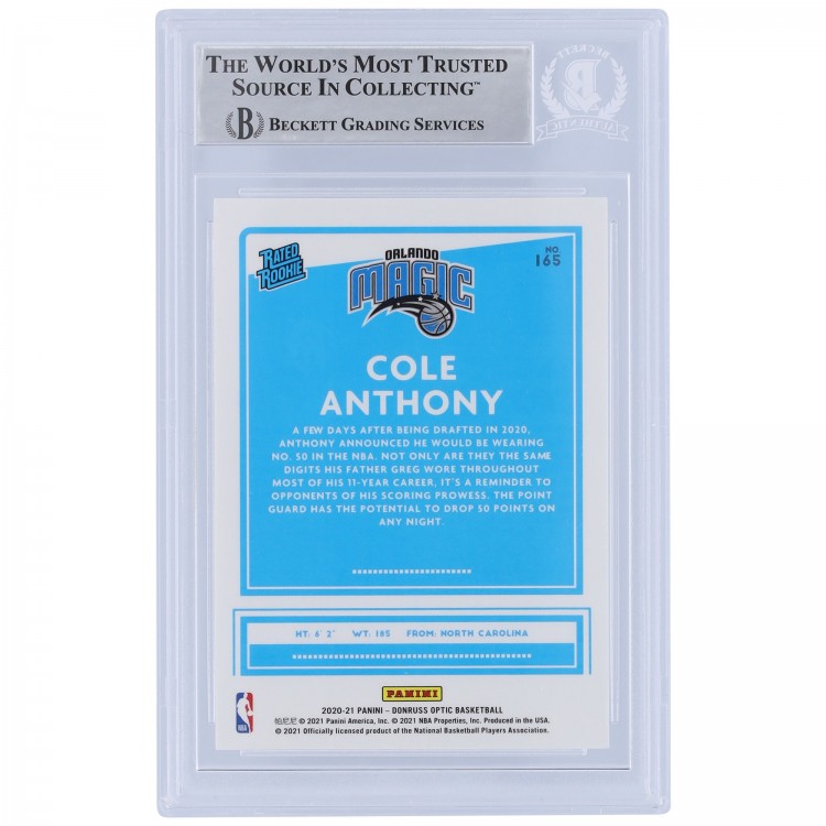 Cole Anthony Orlando Magic Autographed 2020-21 Panini Donruss Optic #165 Beckett Fanatics Witnessed Authenticated Rookie Card with Go Magic Inscription