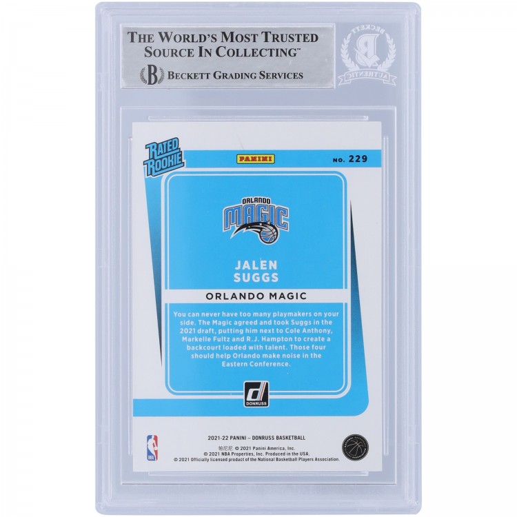 Jalen Suggs Orlando Magic Autographed 2021-22 Panini Donruss Rated Rookie #229 Beckett Fanatics Witnessed Authenticated Rookie Card with Go Magic Inscription