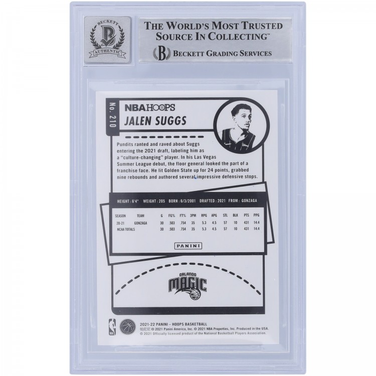 Jalen Suggs Orlando Magic Autographed 2021-22 Panini NBA Hoops #210 Beckett Fanatics Witnessed Authenticated 10 Rookie Card with Go Magic Inscription