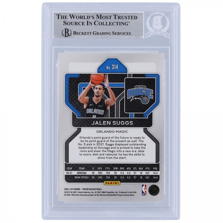 Jalen Suggs Orlando Magic Autographed 2021-22 Panini Prizm #314 Beckett Fanatics Witnessed Authenticated Rookie Card