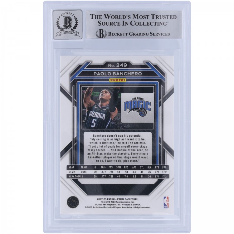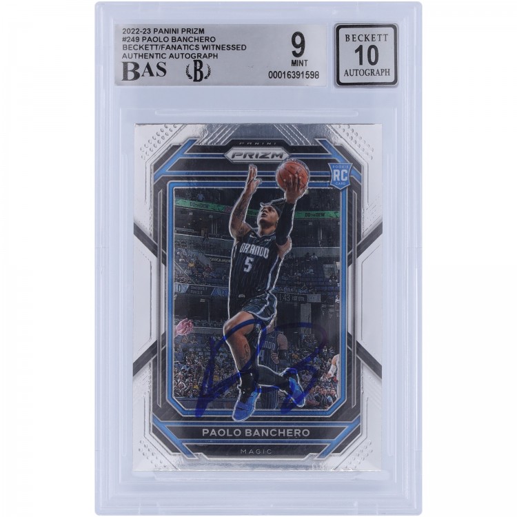 Paolo Banchero Orlando Magic Autographed 2022-23 Panini Prizm #249 Beckett Fanatics Witnessed Authenticated 9/10 Rookie Card