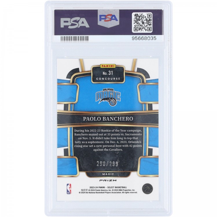 Paolo Banchero Orlando Magic 2023-24 Panini Select Light Blue Prizm #31 #298/299 PSA Authenticated 10 Card