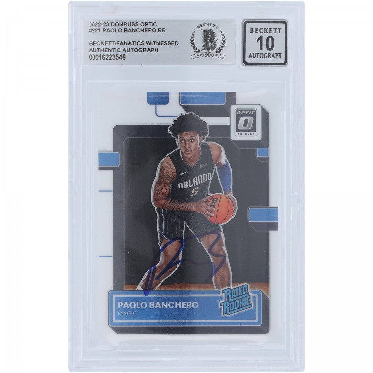 Paolo Banchero Orlando Magic Autographed 2022-23 Panini Donruss Optic Rated Rookie #221 Beckett Fanatics Witnessed Authenticated 10 Rookie Card