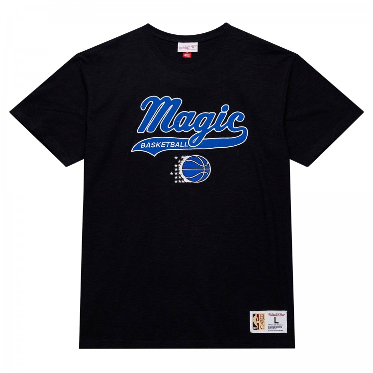 Футболка Orlando Magic Mitchell & Ness Black Hardwood Classics Felt Applique Slub