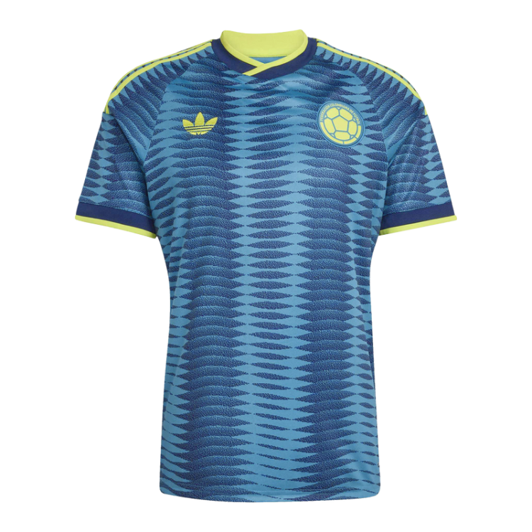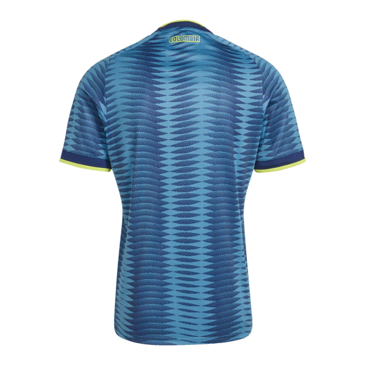 • DESIGN DETAILS: The 2026 Away jersey brings the vibrant essence of Colombia's rich biodiversity to life. With a design inspired by the nation's coastlines and the anthem's poetic line, these jerseys feature a captivating wavy pattern in blue tones, accented with yellow trims.