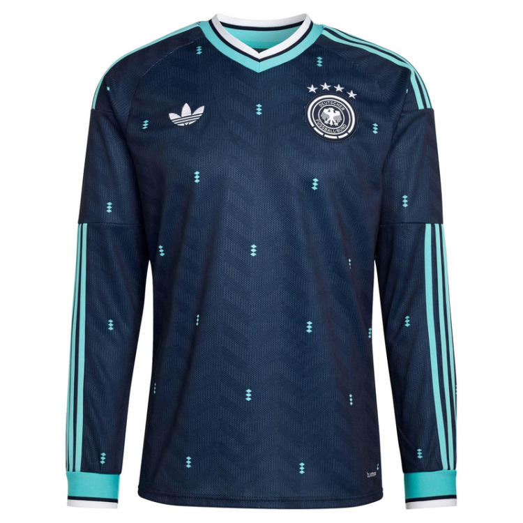 DESIGN DETAILS: The 2026 Away jersey merges tradition with modernity, inspired by iconic moments in German football history. The jersey is a tribute to classic designs, creating a timeless look that resonates with fans and players alike.