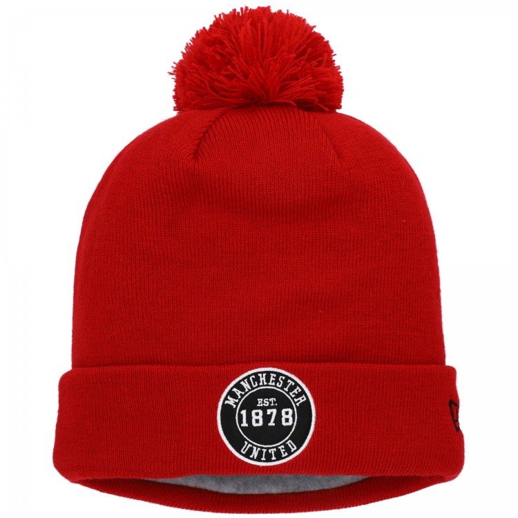 Шапка с помпоном Manchester United New Era Patch Bobble Cuffed Knit - Red