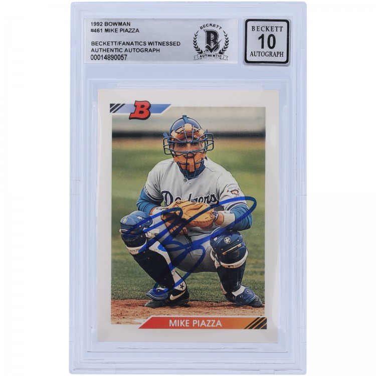 Autographed Los Angeles Dodgers Mike Piazza 1992 Bowman Series 1 #461 Beckett Fanatics Witnessed Authenticated 10 Rookie Card