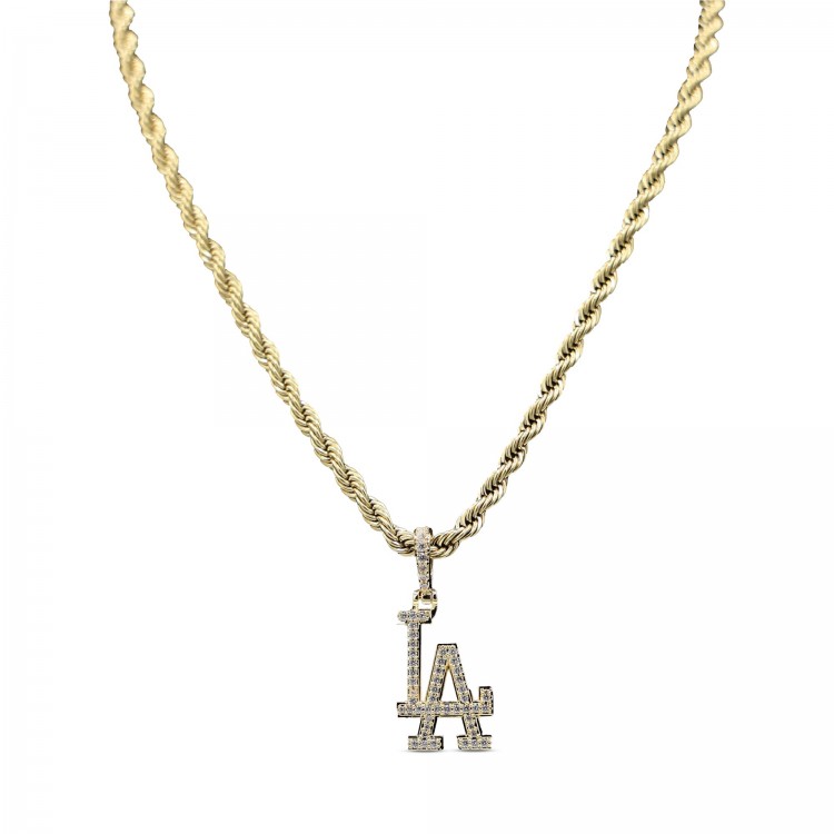 Los Angeles Dodgers GLD 18K Yellow Gold Logo Pendant & 20 Rope Chain
