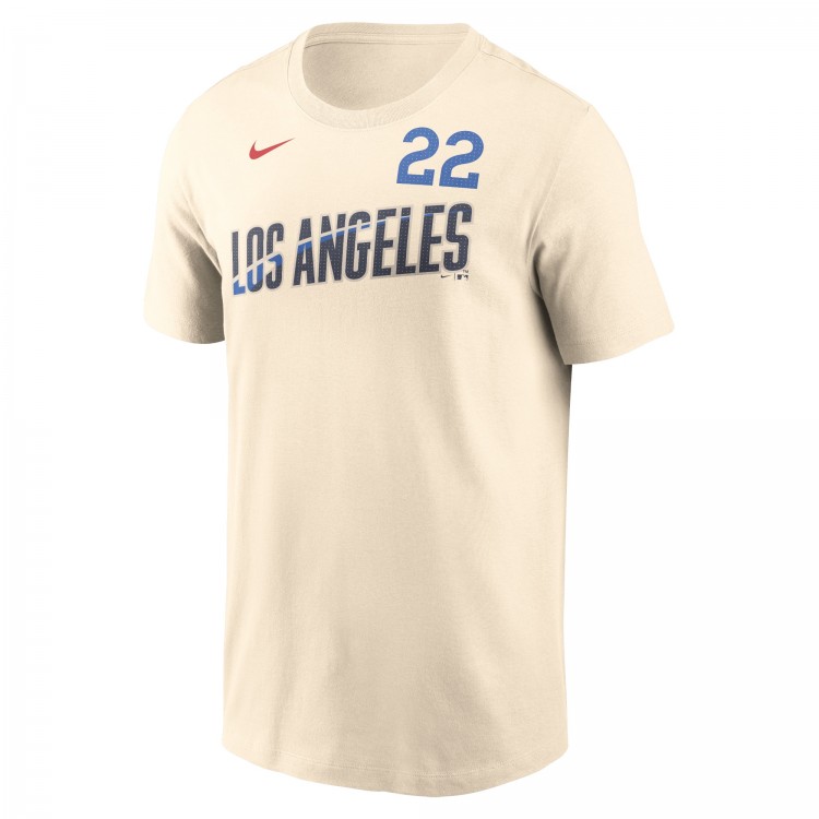 Los Angeles Dodgers Clayton Kershaw Nike Cream 2024 City Connect Fuse Name & Number T-Shirt