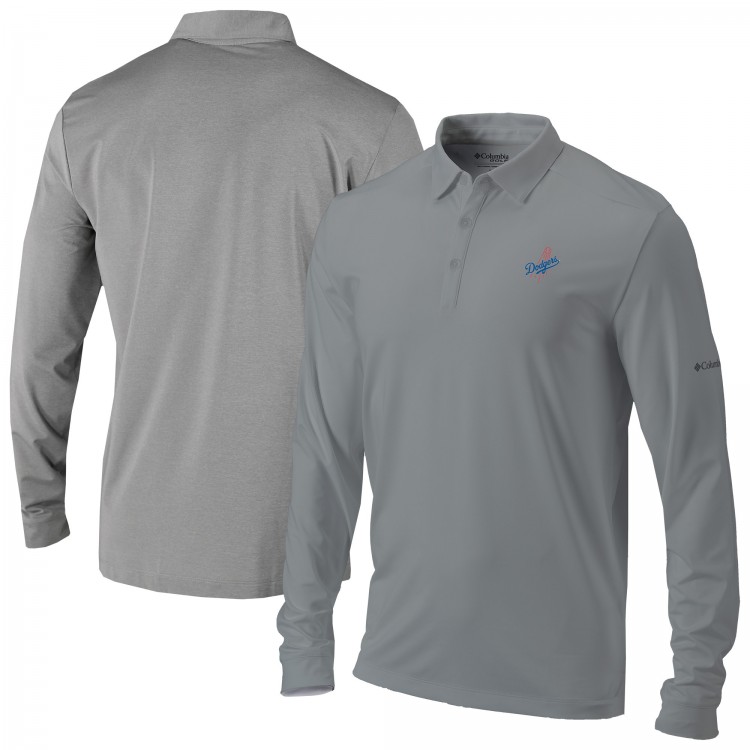 Los Angeles Dodgers Columbia Gray Omni-Wick Pin High Long Sleeve Polo