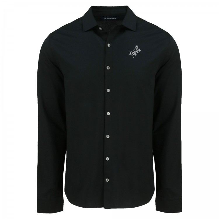 Los Angeles Dodgers Cutter & Buck Black Knitted Advantage Tri-Blend Eco Soft Pique Long Sleeve Button-Up Shirt