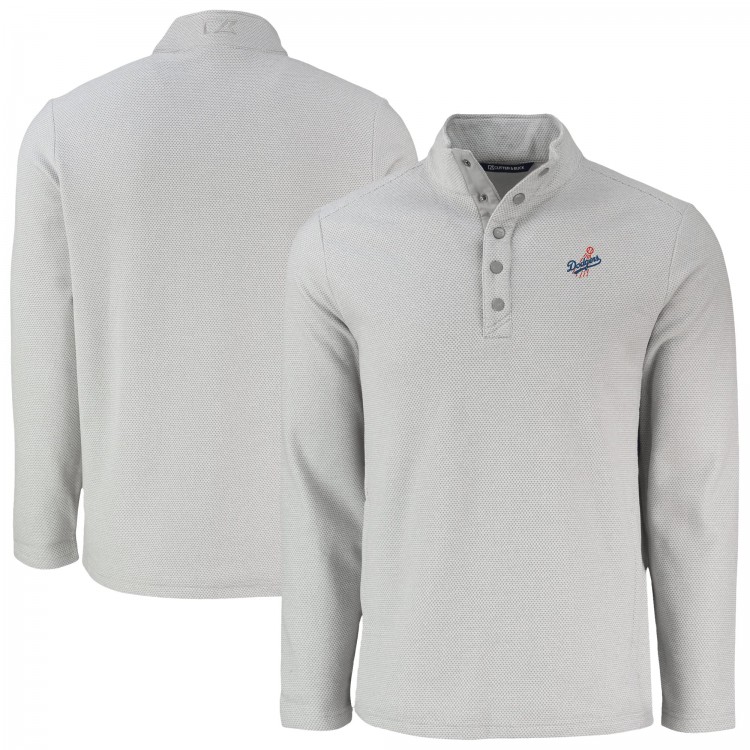 Los Angeles Dodgers Cutter & Buck Gray Hunts Point Eco Textured Fleece Recycled Half-Snap Sweatshirt