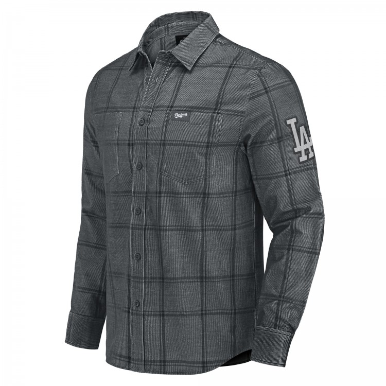 Los Angeles Dodgers Darius Rucker Collection by Fanatics Gray Thin Wale Corduroy Plaid Button Up Shirt