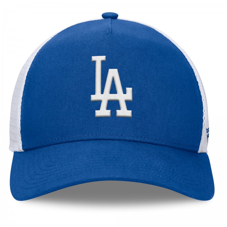 Los Angeles Dodgers New Era Stone/Royal Text A-Frame Trucker 9FORTY Hat