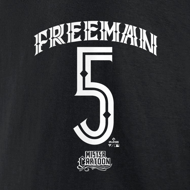 Los Angeles Dodgers Freddie Freeman Black Mister Cartoon Name & Number T-Shirt