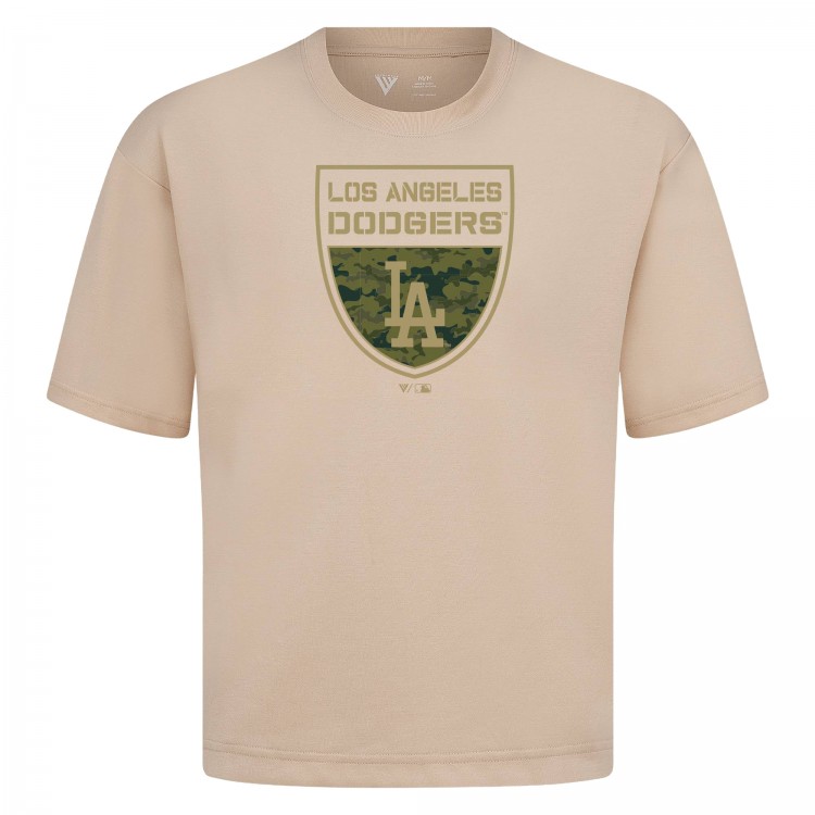 Los Angeles Dodgers Levelwear Khaki Oversized Luxe Signature Knit Buckler T-Shirt