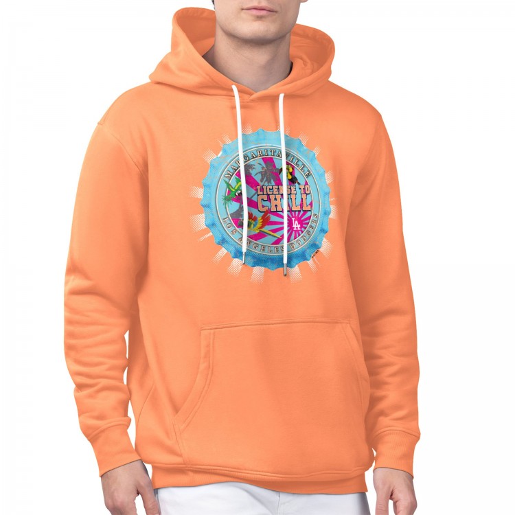 Los Angeles Dodgers Margaritaville Orange Chill Bottle Cap Fleece Pullover Hoodie