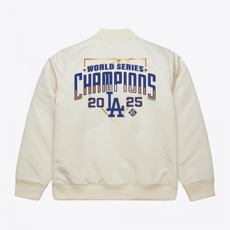 Los Angeles Dodgers Mitchell & Ness Cream 2025 World Series Champions Full-Zip Bomber Jacket