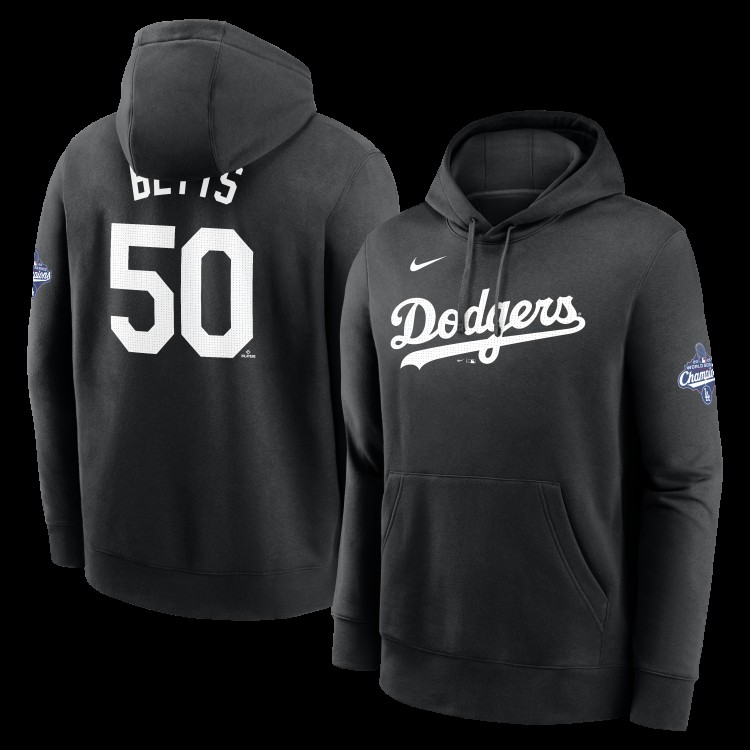 Los Angeles Dodgers Mookie Betts Nike Black 2025 World Series Champions Name & Number Hoodie