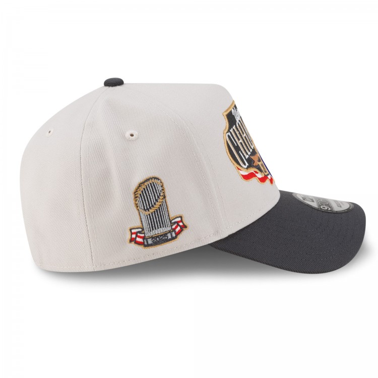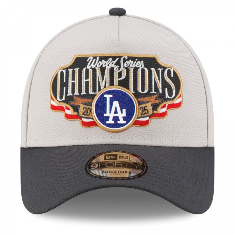 Бейсболка Los Angeles Dodgers New Era Cream/Charcoal 2025 World Series Champions Locker Room A-Frame 9FORTY
