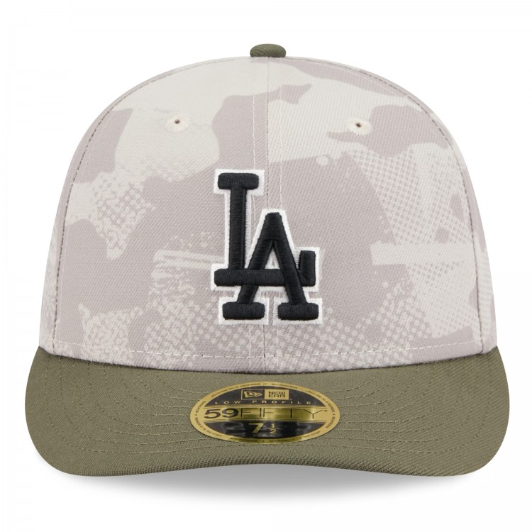 Бейсболка Los Angeles Dodgers New Era Light Beige/Olive 2025 Armed Forces Day Low Profile 59FIFTY