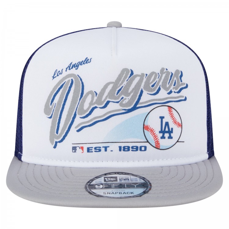 Бейсболка Los Angeles Dodgers New Era White/Gray Retro Script Trucker 9FIFTY Snapback