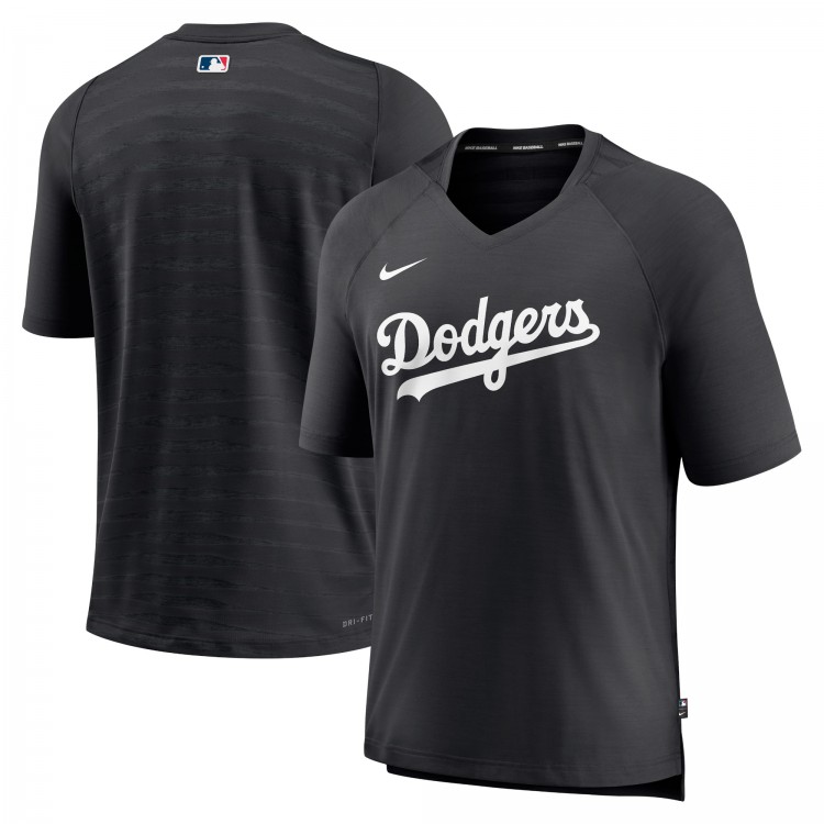 Los Angeles Dodgers Nike Black Authentic Collection Pregame Raglan Performance V-Neck T-Shirt